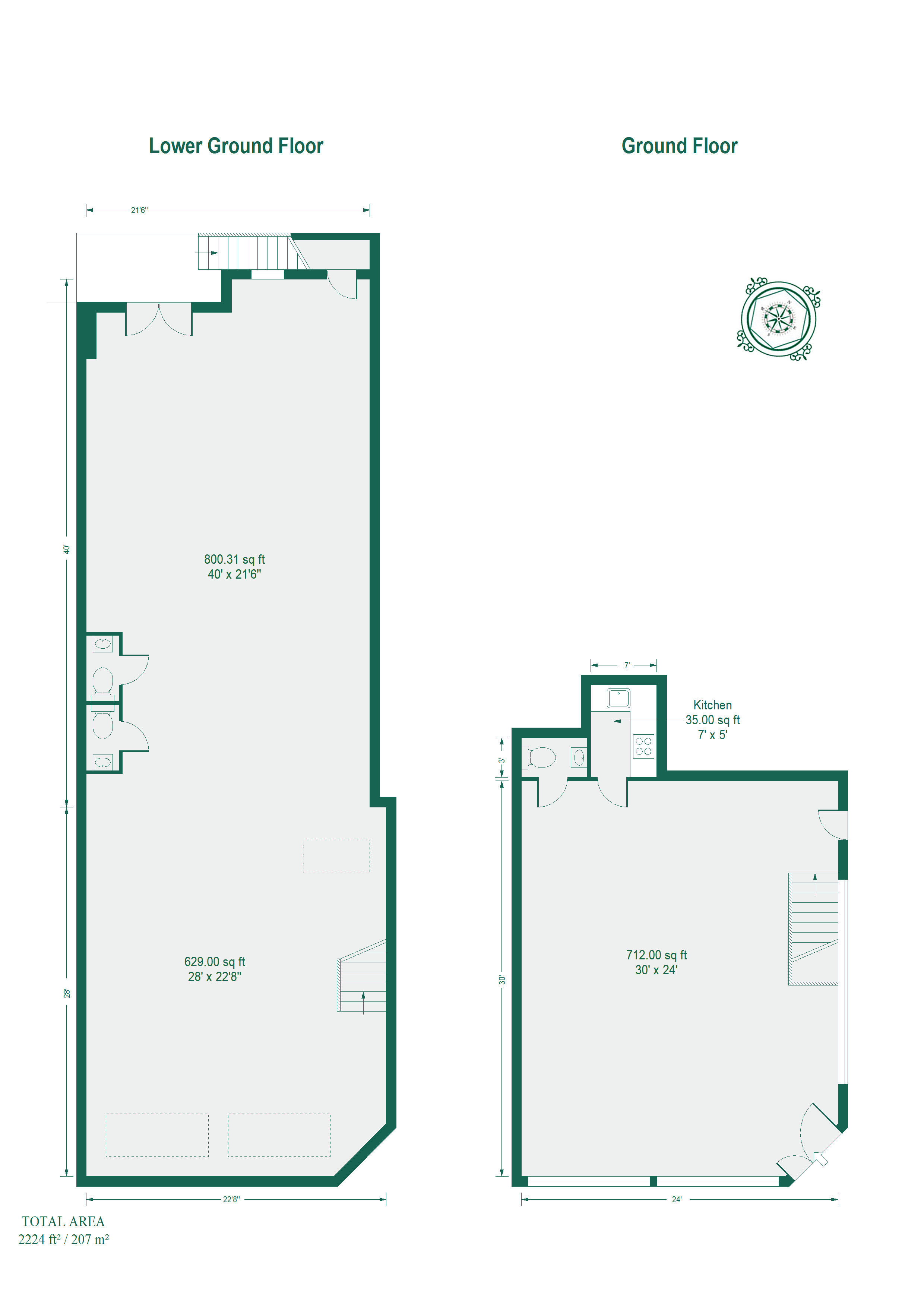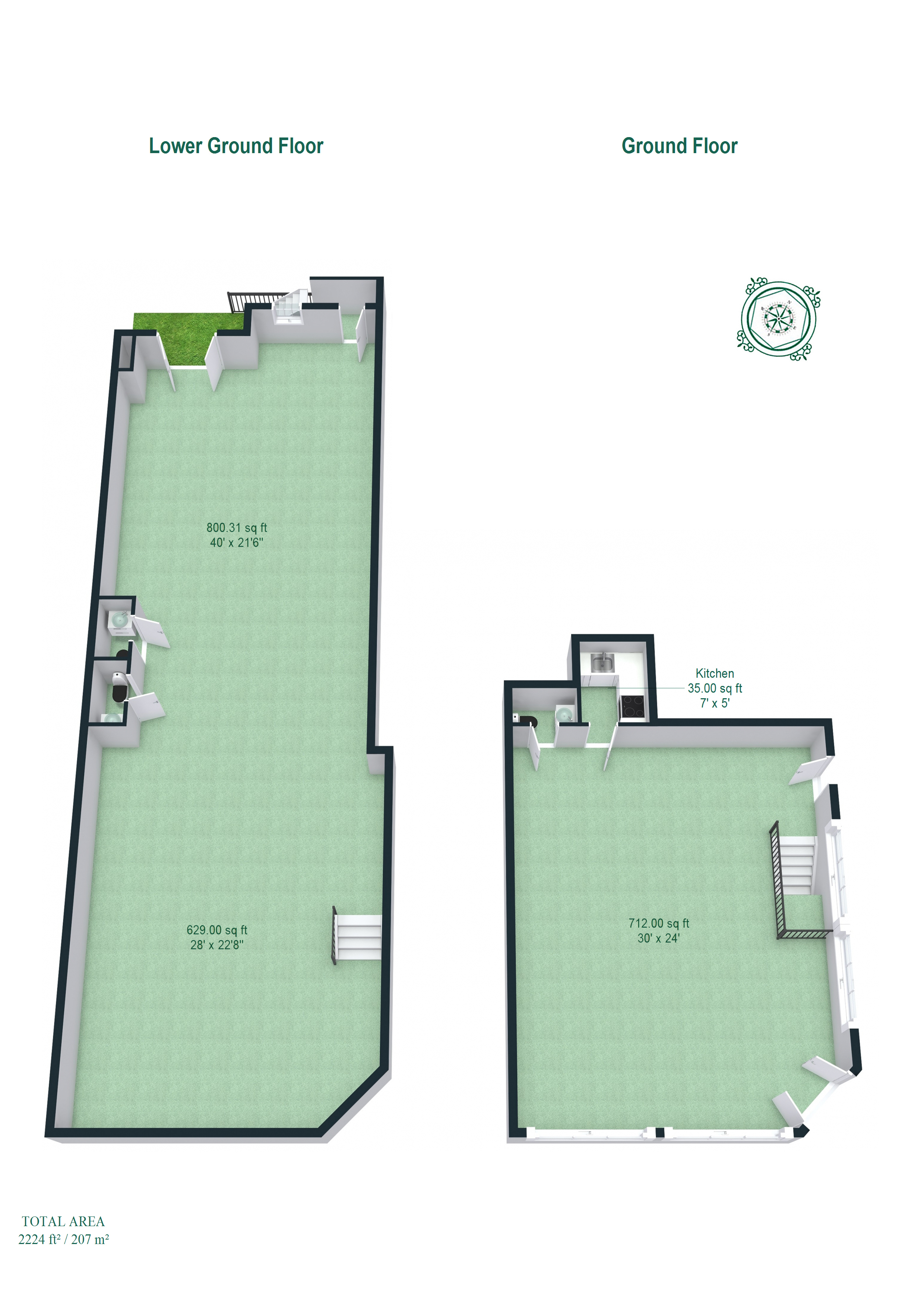 This commercial property is split between two levels. The ground level is a total of 747 Sq. Ft. with a Kitchen and a WC. The lower ground floor is a total of 1,429.31 sq. ft with 2 additional WC’s. This property has ample space.