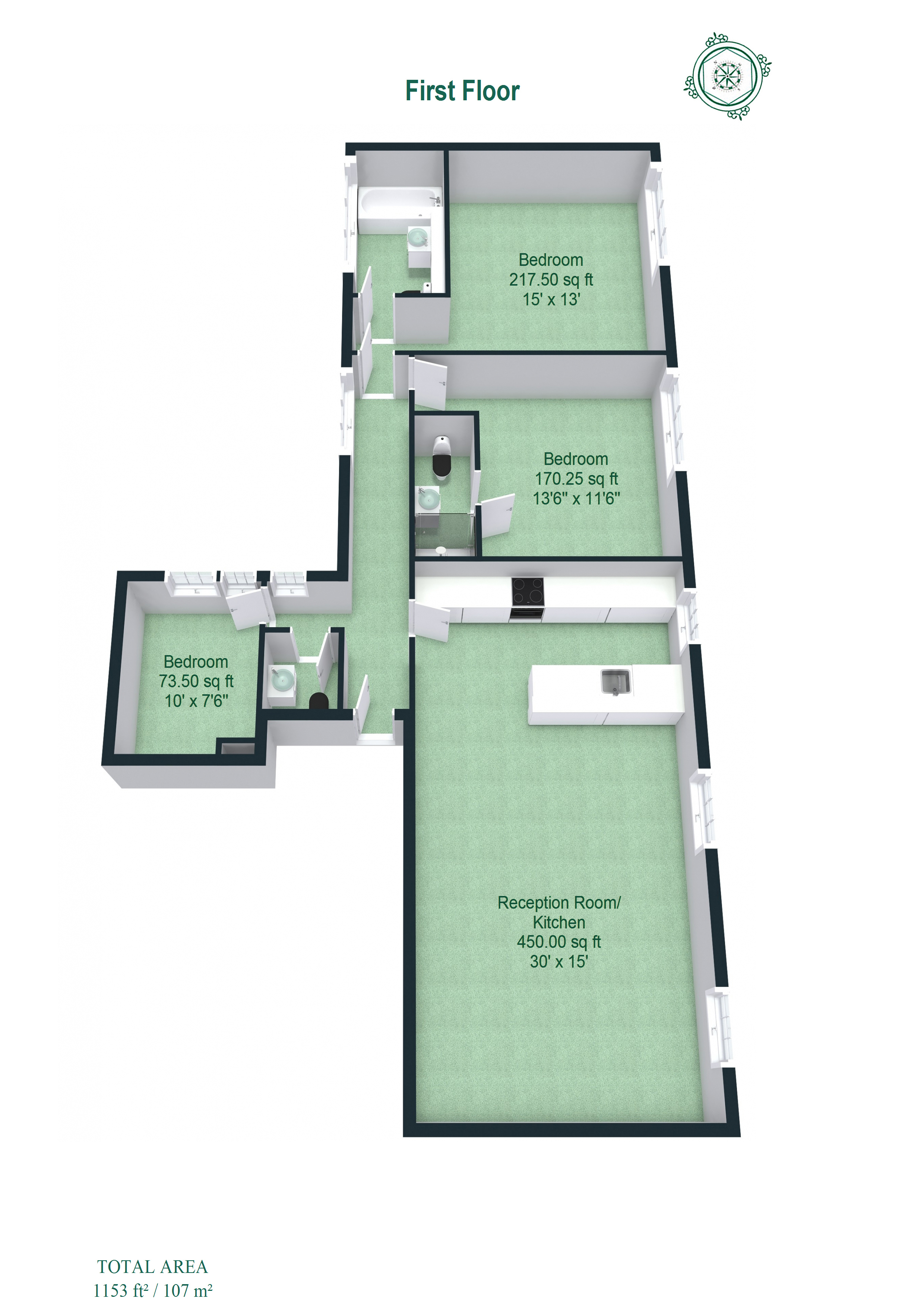 The property comprises Three bedrooms full of natural light the principal bedroom is accompanied by a modern 3 Piece ensuite bathroom. The second bedroom is similar in size and also accompanies a shower ensuite. Lastly the Third Bedroom, the third bedroom is smaller in size however, can still accompany a double bed.