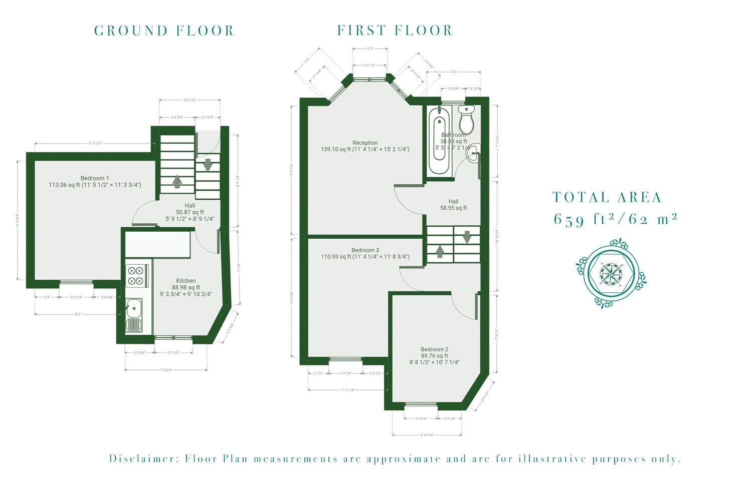 Inside, the property reflects a modern and aesthetically appealing finish. The reception area offers high ceilings, wooden flooring and large bay windows all adding character to the property. The kitchen is completely equipped with a gas hob, oven and a fridge/freezer. All three bedrooms are large doubles and abundant in natural light brought about by the double-glazed windows.