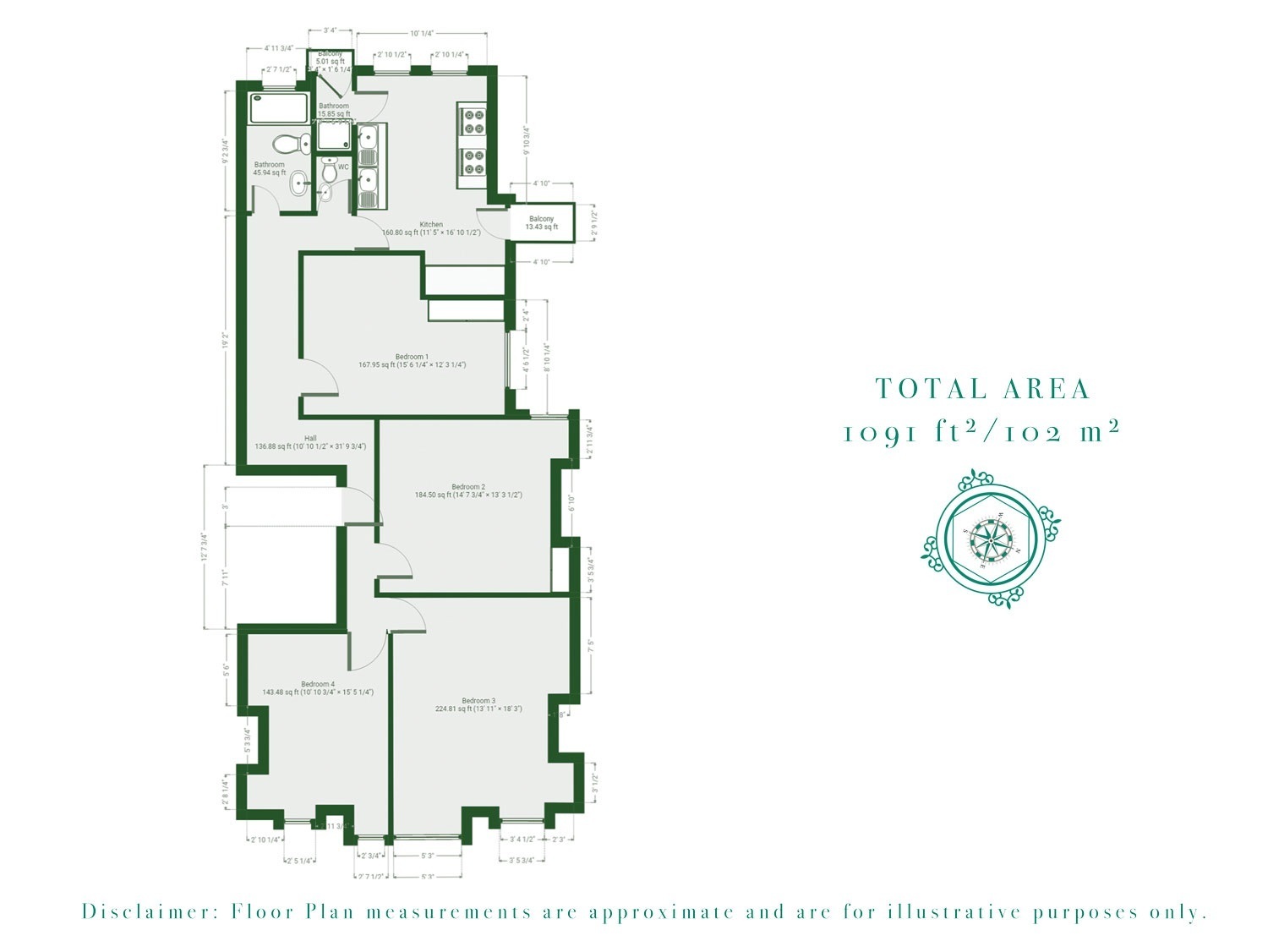 Inside, the property reflects a modern and aesthetically appealing finish. The flat offers high ceilings and wooden flooring adding character to the property. The substantially sized kitchen is completely equipped with two gas hobs, two ovens and a fridge/freezer. The kitchen is also fitted with two large sinks. All four bedrooms are enormous doubles, you are free to add any furniture of your choice. The rooms are also abundant in natural light brought about by the expanding double glazed windows.