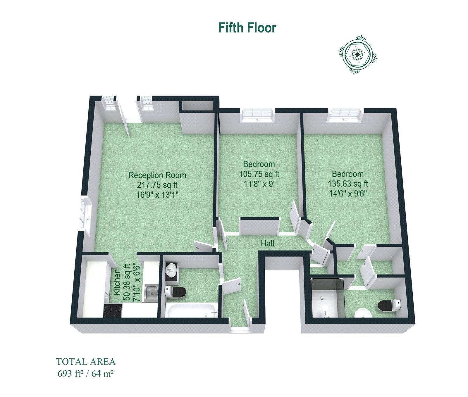 There are two generously sized bedrooms – a primary bedroom and a second double bedroom, making it ideal for couples, young families, or those working from home. The flat also includes a contemporary bathroom, a separate WC, and ample storage space off the central hallway.