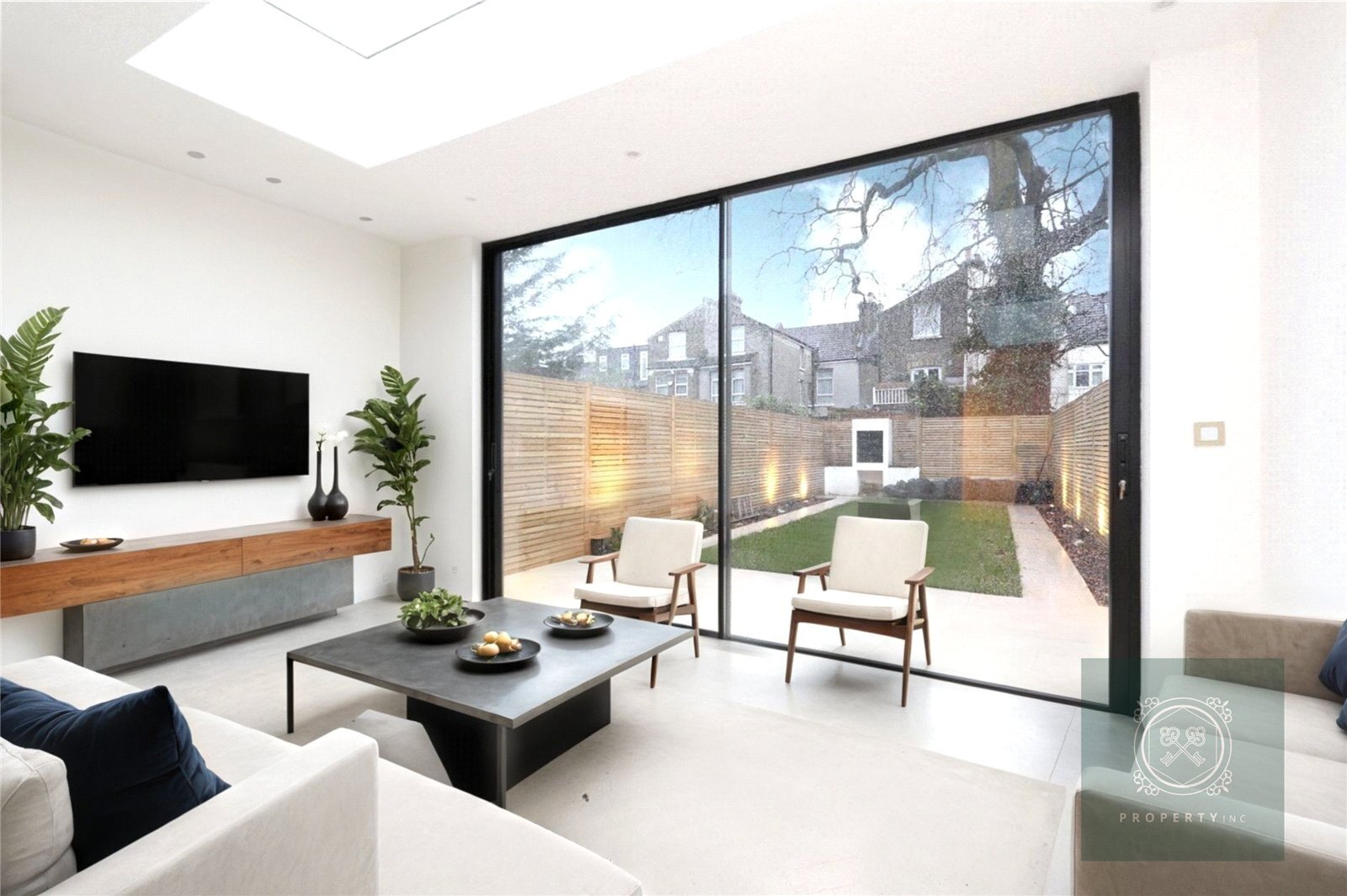Leading on from the kitchen a sun-lit reception room with bespoke Cortizo German sliding doors and self-cleaning expansive skylights. The doors lead you onto a landscaped south facing garden with newly fitted panelled fences, brick-built barbecue and up lights. An ideal area for relaxing in good weather and dare we say it for those lovely barbeque days!