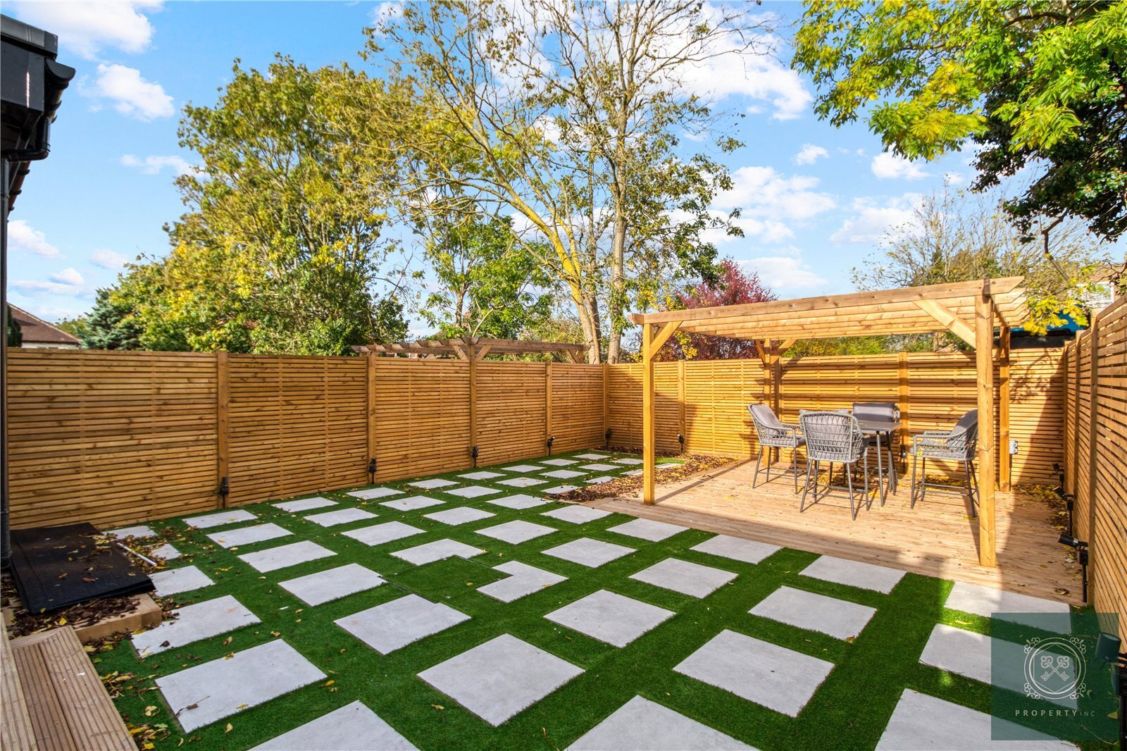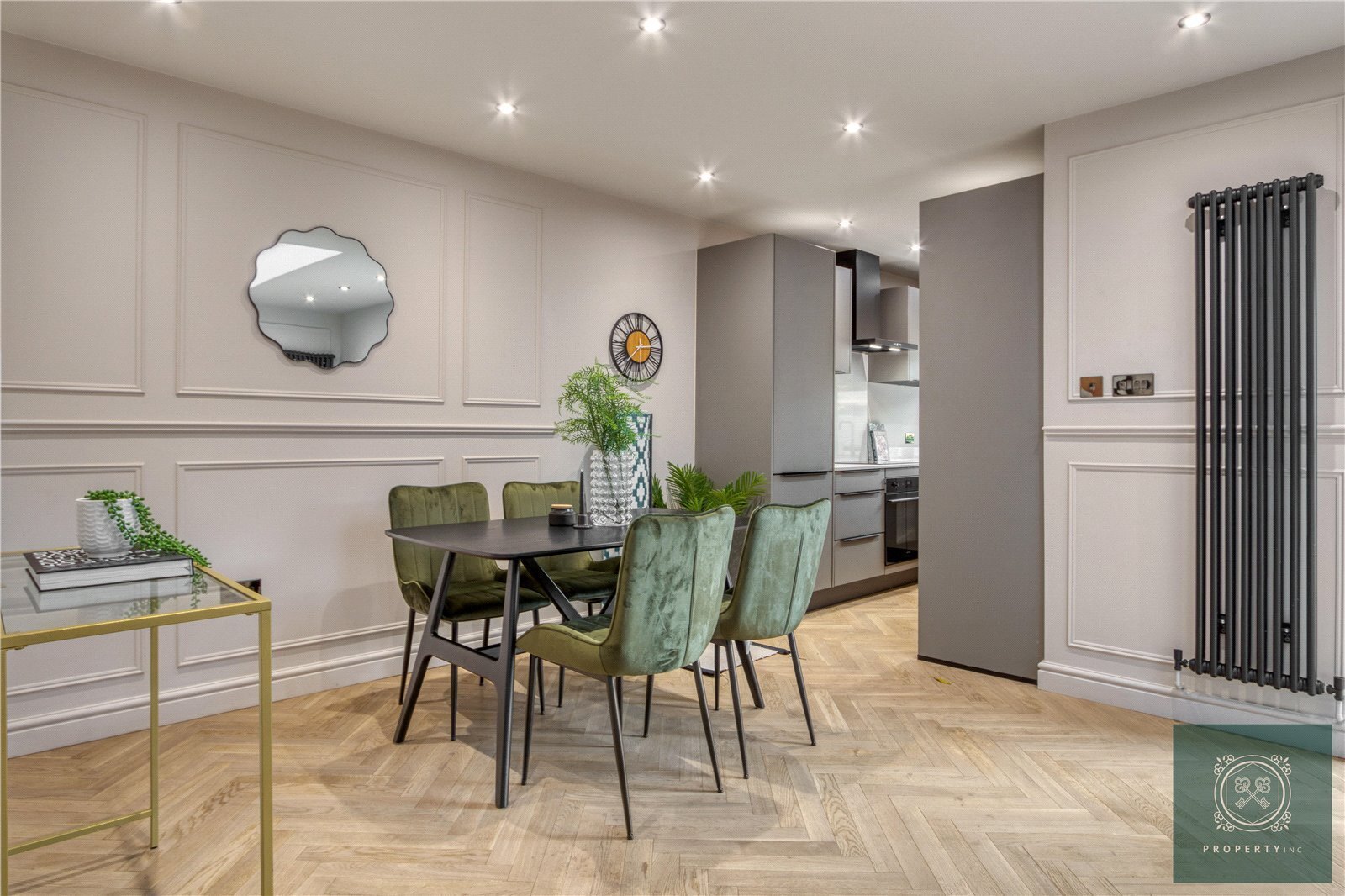 This exquisite two-bedroom ground-floor flat presents a seamless blend of modern luxury and refined design. The open-plan layout of the living area and kitchen creates a spacious, inviting ambiance, highlighted by stunning floor-to-ceiling Cortizo glass sliding doors that flood the space with natural light. These expansive doors open onto a meticulously designed private garden, featuring lush astroturf, stylish decking, and a chic pergola, perfect for alfresco dining and entertaining all year round. The bespoke kitchen is a chef’s dream, complete with elegant cabinetry and top-of-the-line Smeg appliances that combine form and function, making every day cooking or hosting feel extraordinary.
