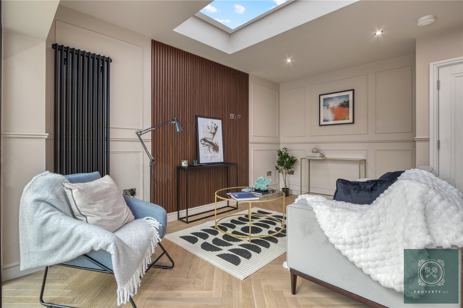 The attention to detail extends throughout the home, from the engineered herringbone parquet flooring that adds a touch of sophistication, to the custom internal doors and premium aluminium sash windows that bring a timeless aesthetic. The bathroom boasts high-end Aquaroc and Arezzo fittings, delivering a great retreat, further enhanced by underfloor heating in both the bathroom and communal areas to ensure warmth and comfort. Each bedroom features integrated LED mood lighting, creating a cozy yet modern atmosphere, perfect for relaxation at the end of a long day.