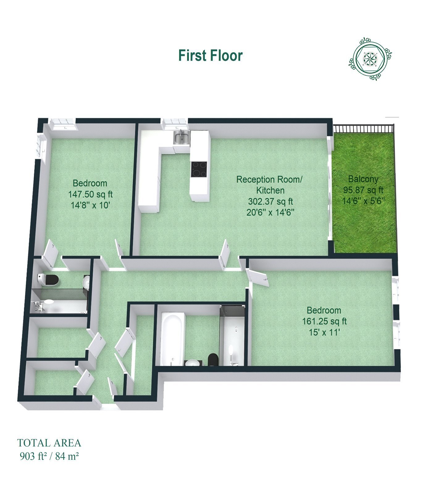 Both bathrooms are finished to an exceptional standard, showcasing elegant design and thoughtful craftsmanship.