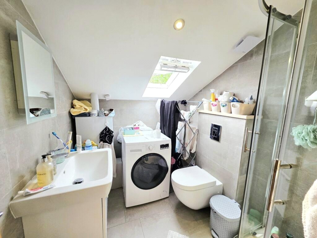 A modern family bathroom is conveniently positioned between the bedrooms, offering both practicality and ease of access.