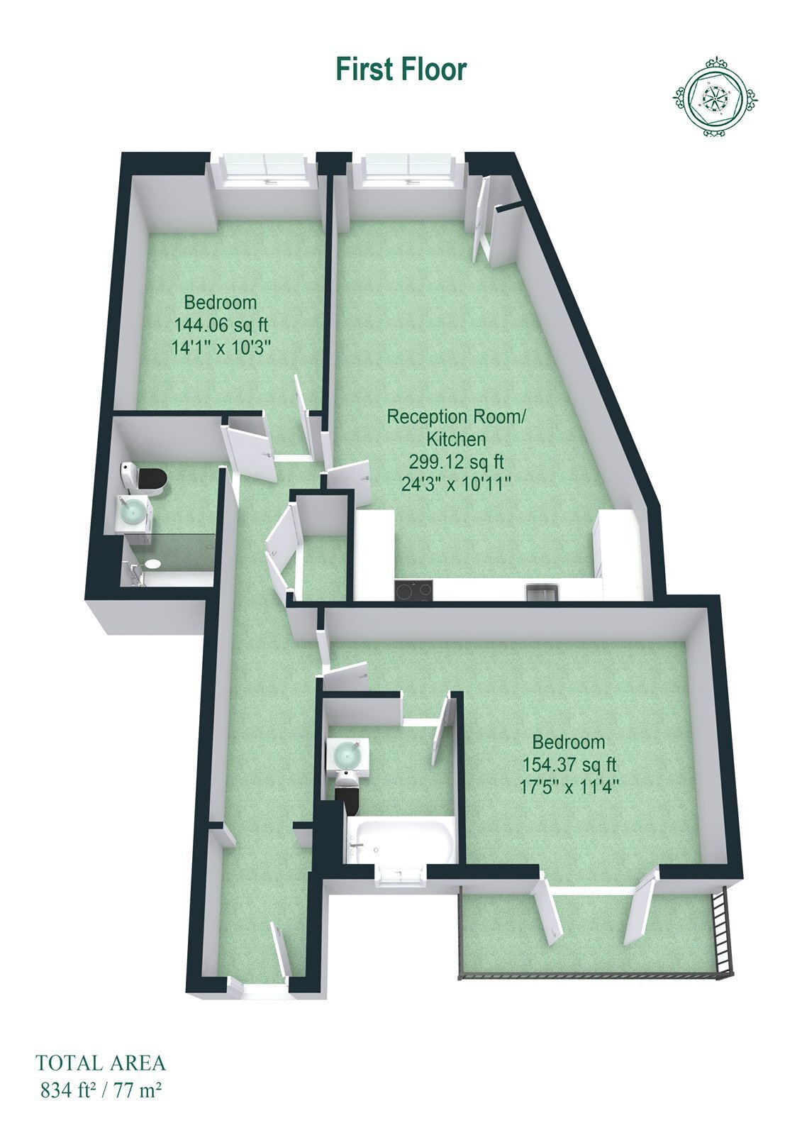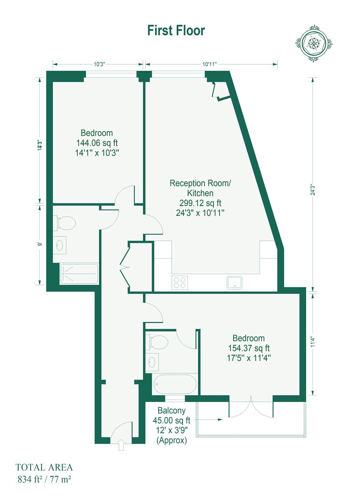 The property is presented with a large open plan reception/kitchen beaming with natural light through the sliding glass doors that provide direct access to the private balcony. The Kitchen is fully integrated with a fridge/freezer, induction hob, oven, washing machine and dishwasher. The kitchen is also fitted with ample storage and worktop space.